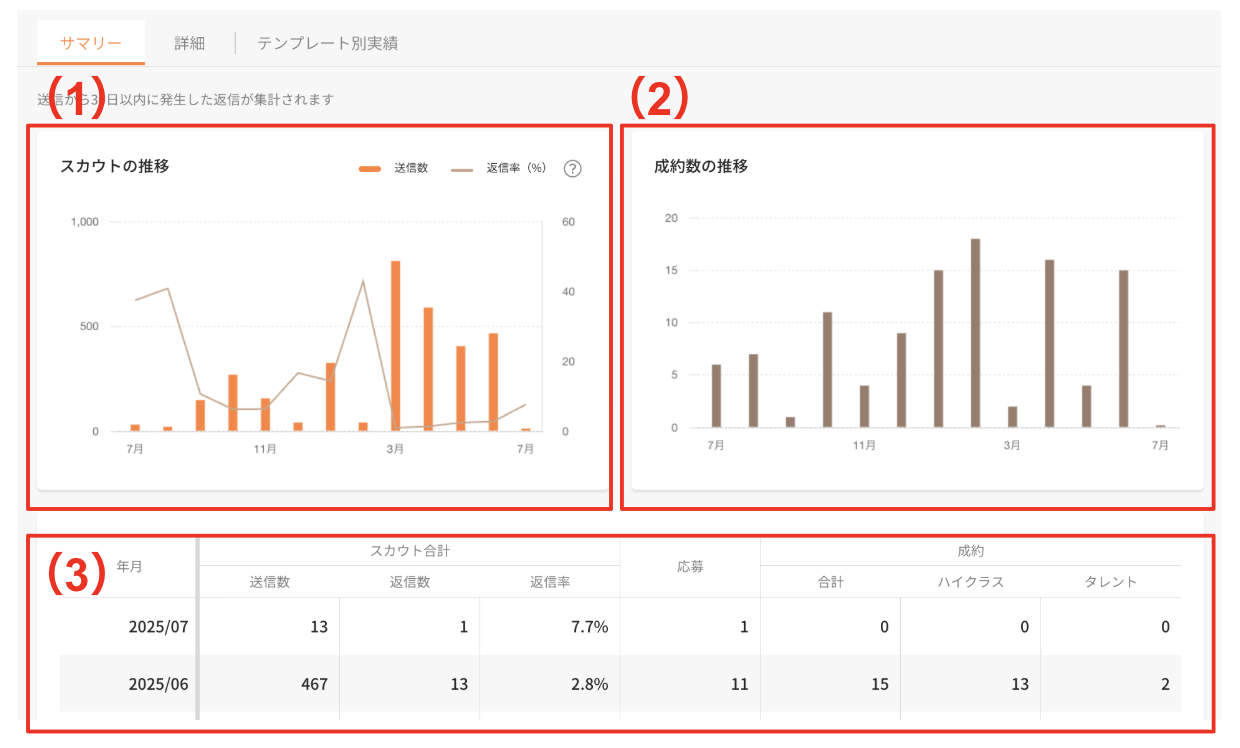 ※各集計データはプラチナスカウト、プラチナスカウト(一時未ログイン専用)の合計値です。 - テンプレートを使用していないスカウトは集計の対象外となります。