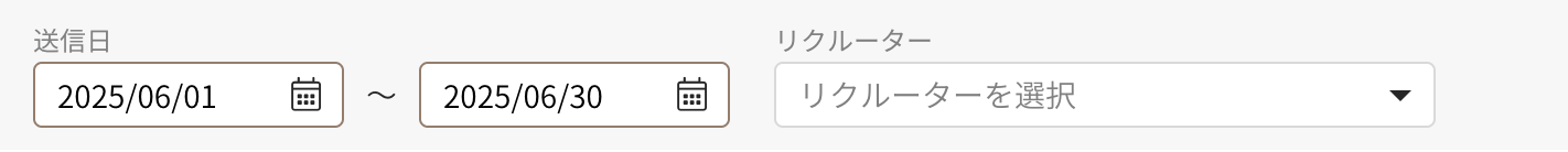 ※2025年5月7日以前の日付を絞り込み選択しても、レポートに含まれるのは2025年5月8日以降の実績のみとなります。 - 「抽出リクルーター」のプルダウンから、数値を確認したいリクルーターを選択できます。停止・退会ステータスのリクルーターは選択肢に表示されません。