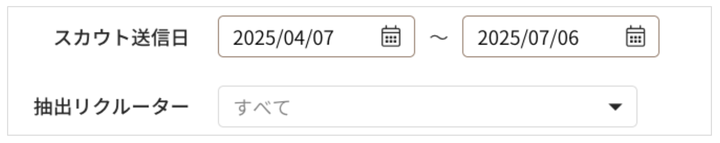 - 「スカウト送信日」項目に初期設定として前日から過去90日以内の期間が入力されています。確認したい期間を入力すると、表示期間を指定できます。