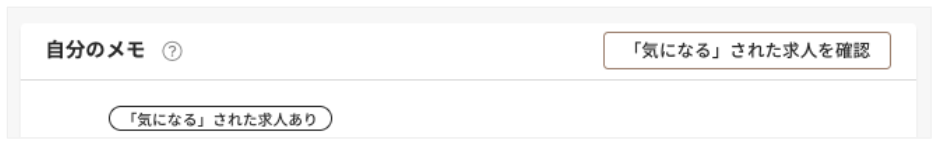 「気になる」をした会員の職務経歴書画面には、自分のメモ欄に「『気になる』された求人あり」というタグがつきます。画面右部にある「『気になる』された求人を確認」ボタンを押すと、どの求人に対して「気になる」をしたかが確認できます。