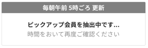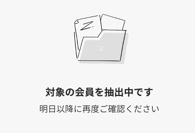 - 表示条件に該当する会員がいない場合、会員は表示されません。更新時間を過ぎても表示されない場合は「抽出中です」と表示されます。翌日以降に再度ご確認ください。