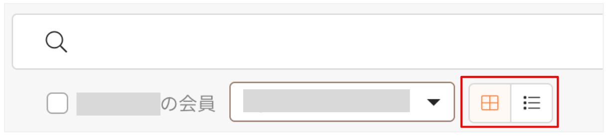 会員検索結果画面では、会員を確認する画面を、画像にあるボタンで、カード表示またはリスト表示に切り替えられます。